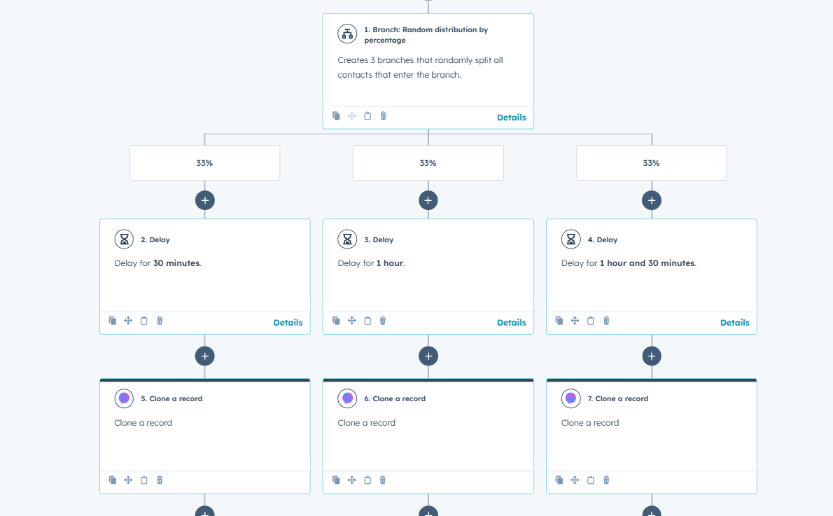 To prevent this when enrolling large batches, you can use HubSpot’s percentage-based branch splits combined with time delays. This helps distribute records evenly and reduce sudden load spikes.